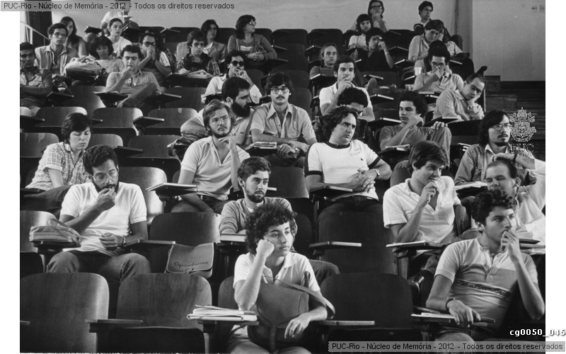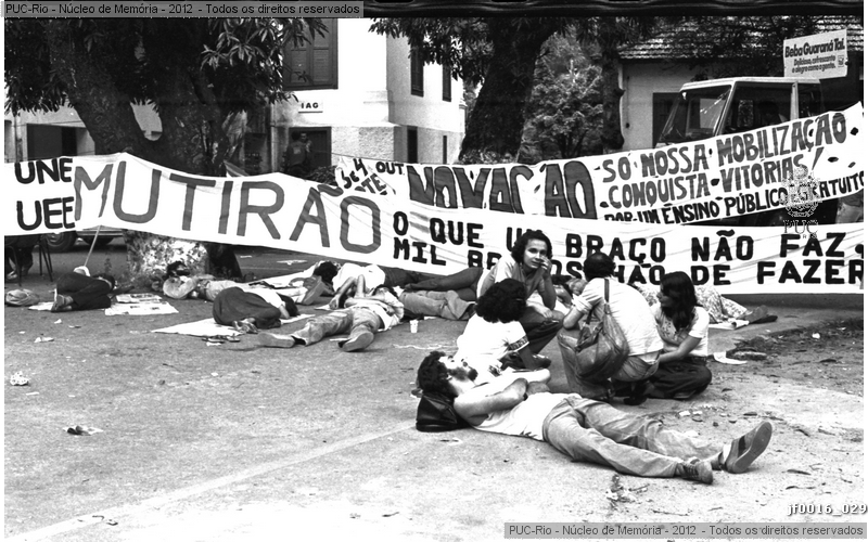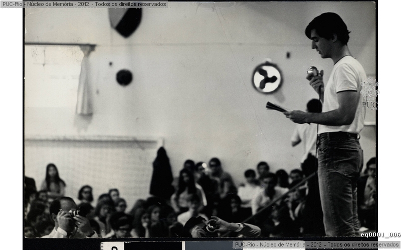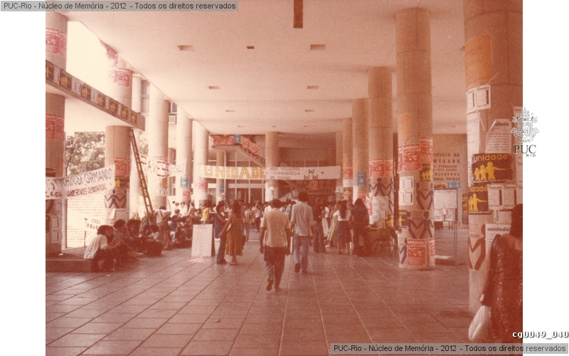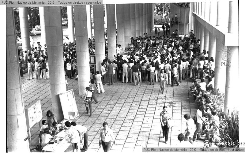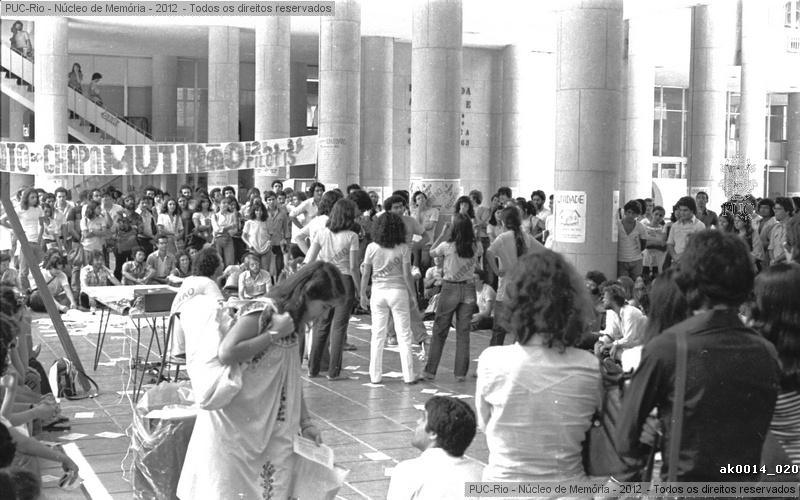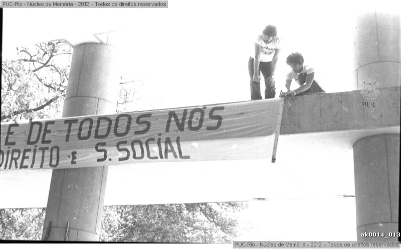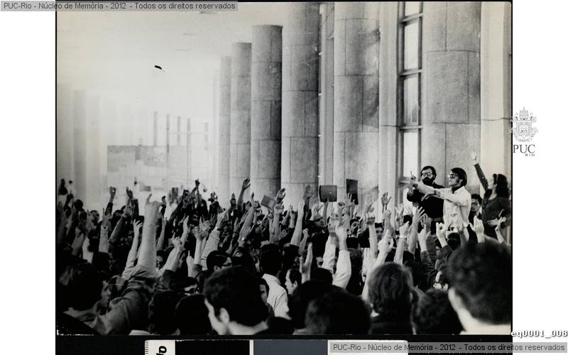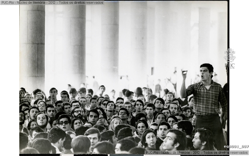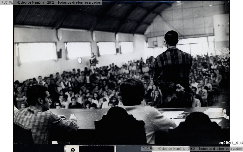 O movimento estudantil percorreu uma longa trajetória nesses 70 anos da PUC. Seu Diretório Central defendeu, ao longo de seus anos de existência, diversas ideologias, desde uma direita mais conservadora, passando por movimentos católicos, até a esquerda radical. Durante a década de 1970, época marcada pelo autoritarismo dos governos militares, o movimento estudantil da PUC ganhou força, exercendo um papel de significativa importância dentro do movimento estudantil regional. As fotografias dessa coleção mostram diversos momentos do movimento estudantil desta Universidade, não nos deixando esquecer que o corpo discente é um dos fortes pilares que contribuíram – e contribuem – para a sustentação da PUC-Rio.