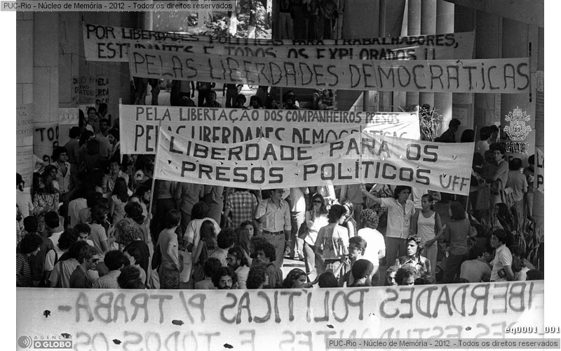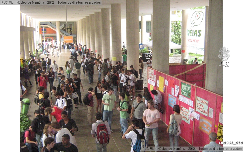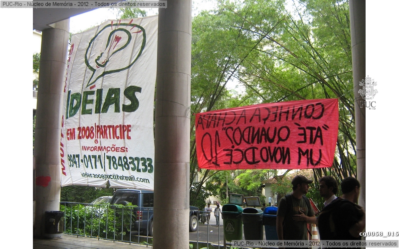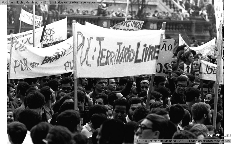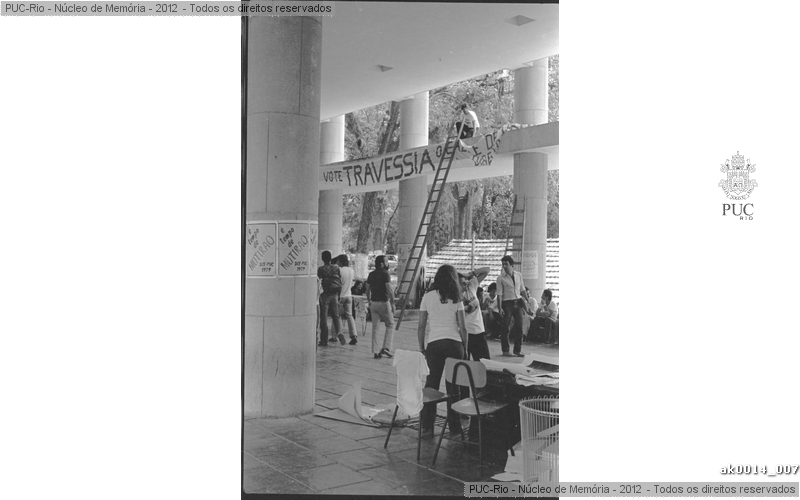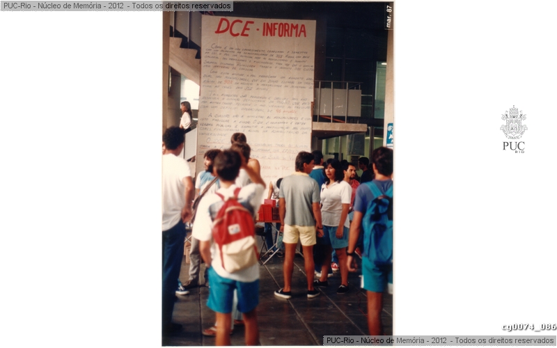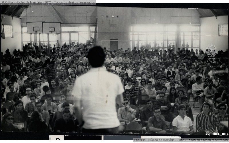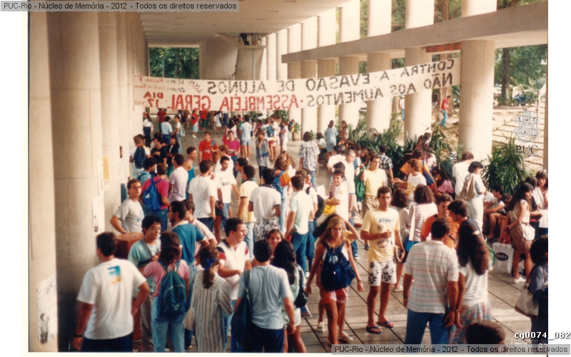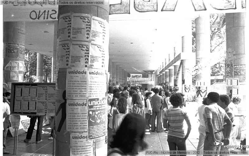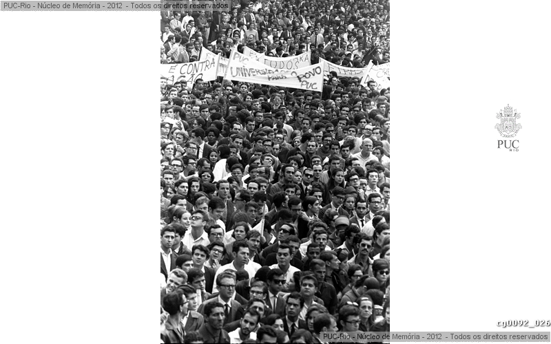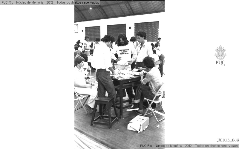 O movimento estudantil percorreu uma longa trajetória nesses 70 anos da PUC. Seu Diretório Central defendeu, ao longo de seus anos de existência, diversas ideologias, desde uma direita mais conservadora, passando por movimentos católicos, até a esquerda radical. Durante a década de 1970, época marcada pelo autoritarismo dos governos militares, o movimento estudantil da PUC ganhou força, exercendo um papel de significativa importância dentro do movimento estudantil regional. As fotografias dessa coleção mostram diversos momentos do movimento estudantil desta Universidade, não nos deixando esquecer que o corpo discente é um dos fortes pilares que contribuíram – e contribuem – para a sustentação da PUC-Rio.