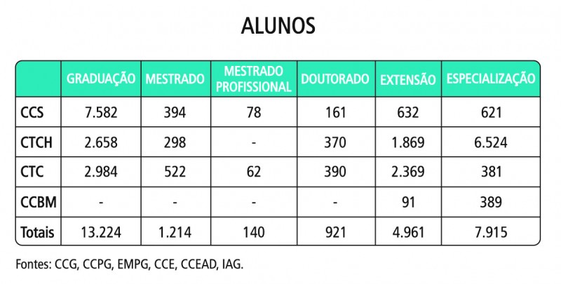 Total de alunos de Graduação, Pós-Graduação, Extensão e Especialização.