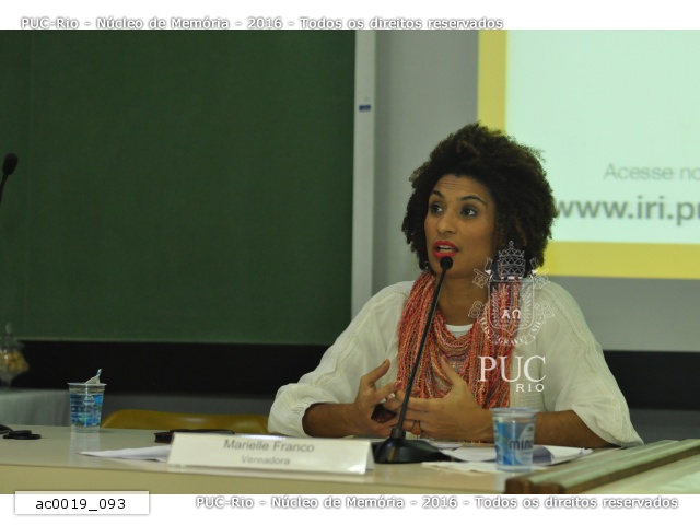 ac0019_093 | 26/5/2017 | Primeira série de Seminários de Graduação debatem, a partir de cinco temas diferentes, o desenvolvimento nacional. “Solidariedade e proximidade: o outro e a proteção social no Brasil” foi o último painel, no qual a vereadora Marielle Franco levou aos alunos a voz da experiência de quem conhece a realidade dos benefícios sociais . |