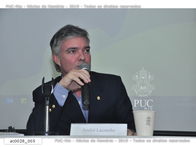 ac0028_008 | 4/6/2019 | O professor Luiz Felipe Guanaes, do Departamento de Geografia e Meio Ambiente e coordenador do NIMA e o Reitor da PUC-Rio, Padre Josafá Siqueira S.J. na abertura da XXV Semana do Meio Ambiente. |