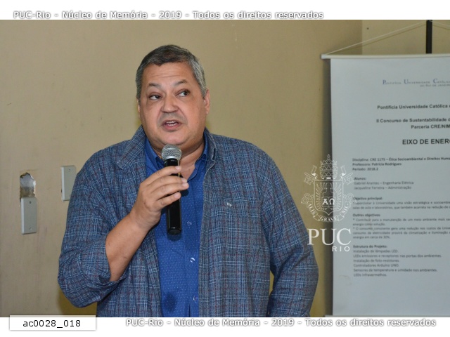 ac0028_017 | 6/6/2019 | O professor, Roosevelt Fidelis, gerente de Projetos Ambientais do NIMA, na entrega dos certificados para os melhores trabalhos dos estudantes da disciplina Ética Socioambiental e Direitos Humanos. |
