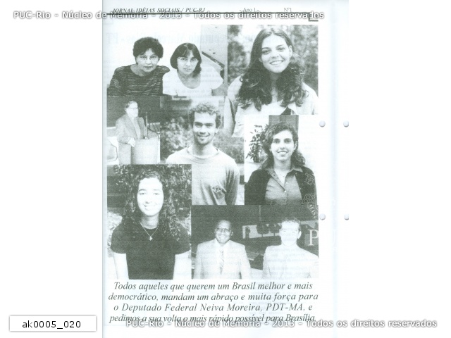 ak0005_020 | 7/1998 | Página 04, ano 1, num. 1, Julho/1998. Apoio ao Deputado Federal Neiva Moreira, PDT-MA. Montagem de fotografias. |