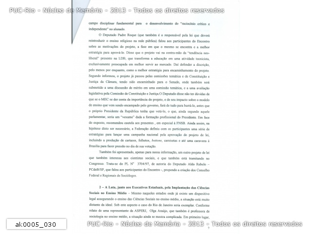 ak0005_030 | 2000 | Criação dos conselhos Federal e Regionais de Sociólogos. 2 - A Luta, junto aos Executivos Estaduais, pela Implantação das Ciências Sociais no Ensino Médio |