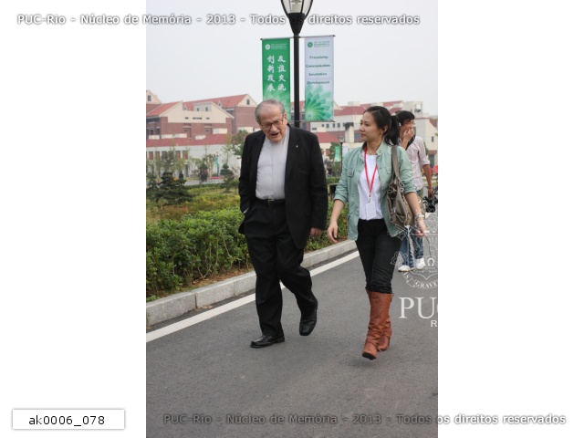 ak0006_078 | 2008 | Pe.Hortal e interpréte em um campus universitário na China. |