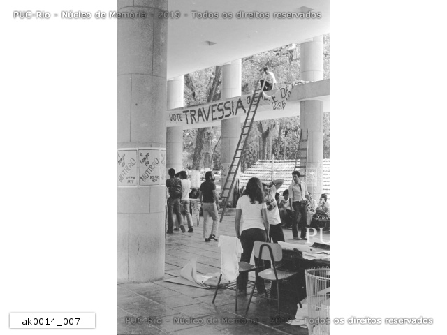 Fotos do acervo do professor e ex-aluno da PUC-Rio Alfredo Jefferson de Oliveira, referentes à campanha da Chapa Unidade/Travessia para as eleições estudantis que ocorreram em 28 de outubro de 1979.