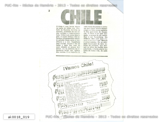ak0018_019 | 1977 | Sobre a situação política no Chile: artigo e letra de música. Jornal da chapa Alternativa, do CTC, do movimento estudantil da PUC-Rio, número 03. |