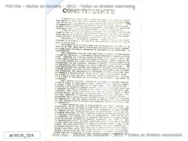 ak0018_026 | 1977 | Debate sobre a constituinte. Jornal da chapa Alternativa, do CTC, do movimento estudantil da PUC-Rio, número 03. |