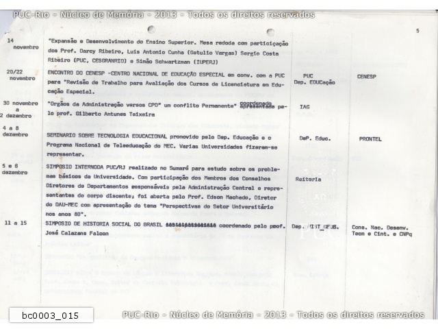 bc0003_015 | 1978 | Encontros, seminários, colóquios e outros realizados na PUC-Rio em 1978. |