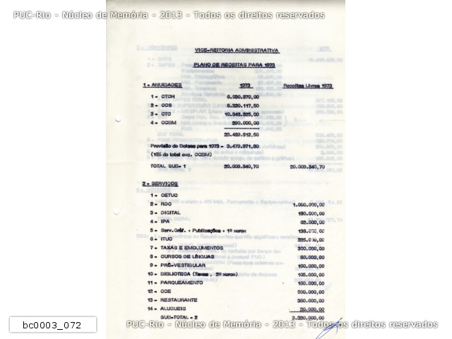 bc0003_072 | 1972 | Plano de receitas para 1973 08.11.1972 |