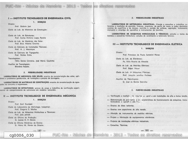 cg0006_030 | 1966 | Páginas 180 e 181 do Catálogo Escolar do Centro Técnico Científico. Institutos Tecnológicos de Engenharia Civil, de Engenharia Mercânica e de Engenharia Elétrica. |