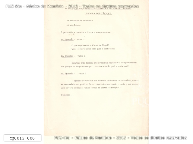 cg0013_002 | 12/5/1966 | Prova de Economia da Engenharia aplicada aos alunos da EGCE. |