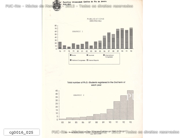 cg0016_025 | 23/12/1993 | University of Alberta to the Development of the Civil Engineering Ph.D Program at PUC-Rio. Histórico da colaboração entre a PUC-Rio e a University of Alberta. Gráficos com o número de publicações e total de alunos na pós-graduação. |