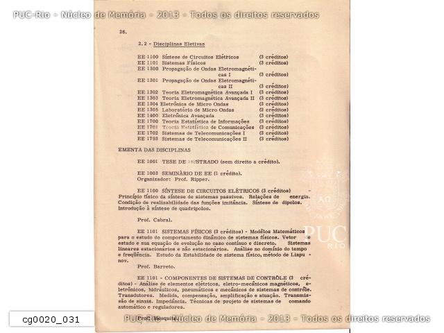 cg0020_031 | 1968 | Seção referente à 'Engenharia elétrica', contendo uma lista com as disciplinas eletivas e suas ementas. |