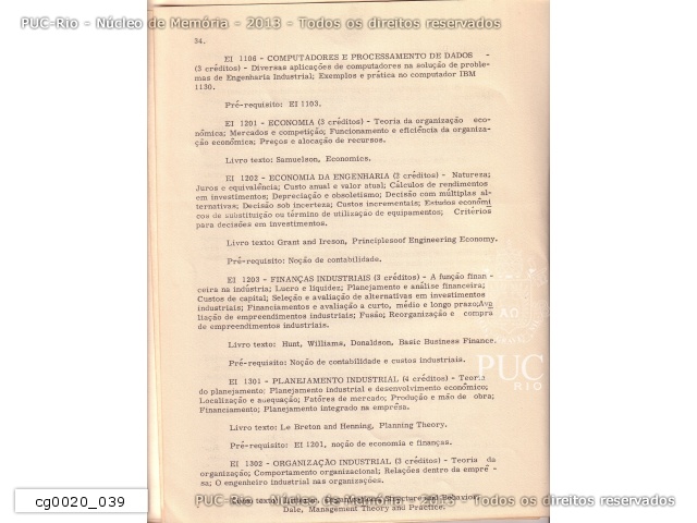 cg0020_039 | 1968 | Ementa das disciplinas no Catálogo oficial da Escola Graduada de Ciências e Engenharia (EGCE), 1968 - 1969. |