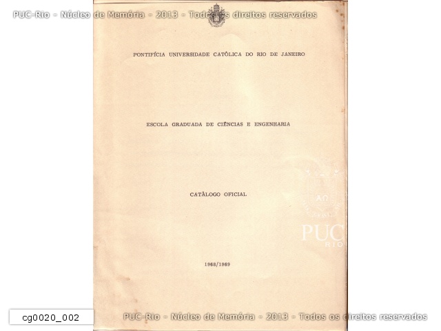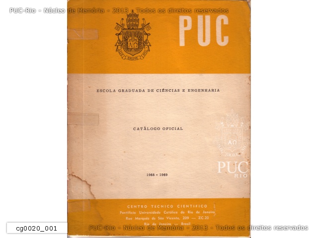 | Catálogo Oficial da Escola Graduada de Ciências e Engenharia - 1968-1969 - cg0020_001 |