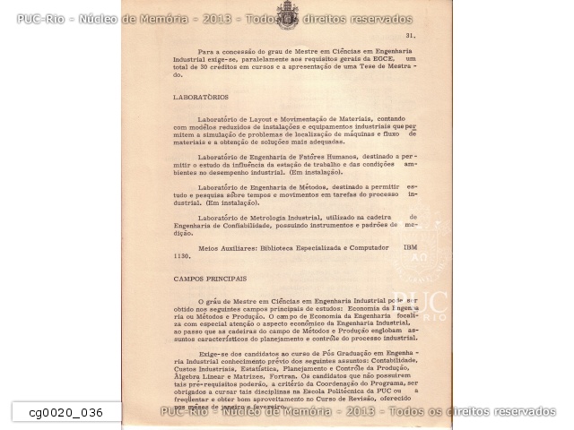 Catálogo Oficial da Escola Graduada de Ciências e Engenharia - 1968-1969 - cg0020_036 |