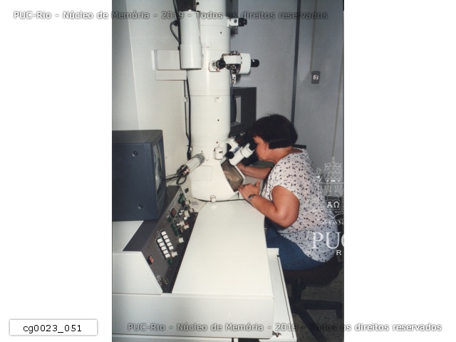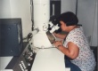 cg0023_051 | 1995 | Pessoa opera equipamento em laboratório, através de um microscópio. |