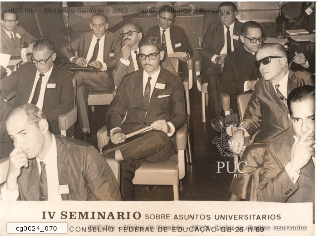 cg0024_070 | 26/11/1969 | O reitor pe. Laércio S.J. participa do IV Seminário Sobre Assuntos Universitários realizado na sala das sessões do Conselho Federal de Educação, no Ministério da Educação e Cultura, entre os dias 26 a 28 de novembro de 1969. O evento contou com a presença de membros e servidores do Conselho Federal de Educação, reitores das universidades brasileiras e convidados. O tema do seminário foi "Anuidades no âmbito do Ensino Superior". |