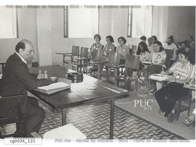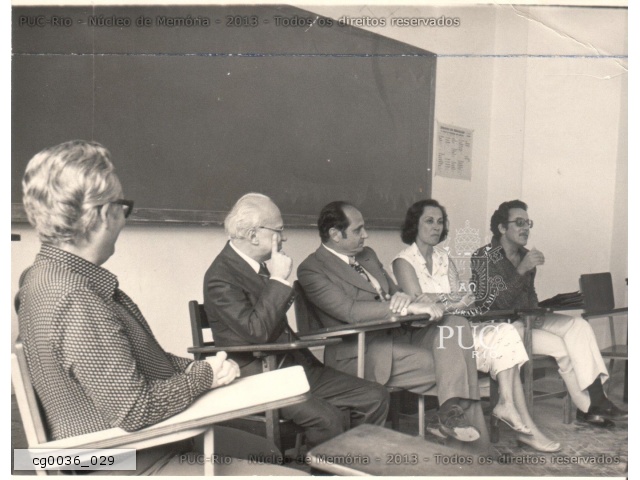 cg0036_022 | 28/9/1979 | O pe. Emanuel Bouzon S.J., Decano do CTCH, a profa. Heidrum Krieger, Coordenadora do Ciclo Básico do CTCH, e a profa. Vera Candau, Coordenadora da Pós-Graduação do CTCH, apresentam as suas respectivas áreas na palestra de encerramento do Seminário Interno do CTCH, realizado na Casa da Gávea nos dias 27 e 28 de setembro de 1979. O seminário promoveu a troca de informações e a integração entre os departamentos constitutivos do CTCH e seus respectivos diretores para a elaboração de um Plano Diretor da PUC-Rio. |