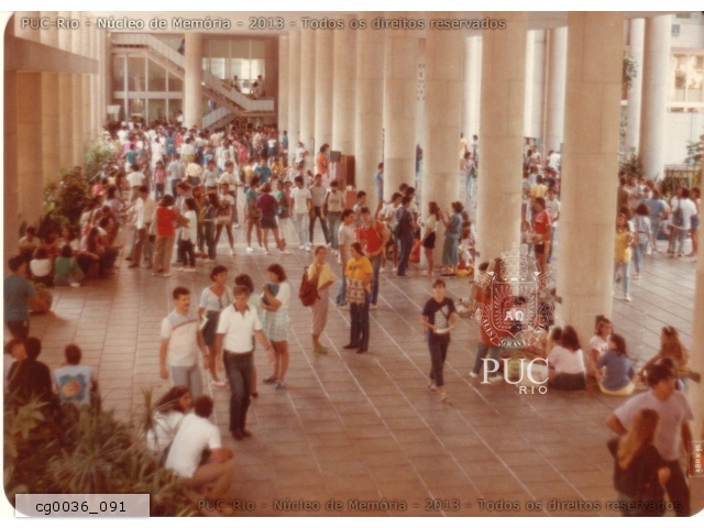cg0036_091 | 1985 | Pessoas nos pilotis. Vista do alto da escada da Ala Kennedy. |