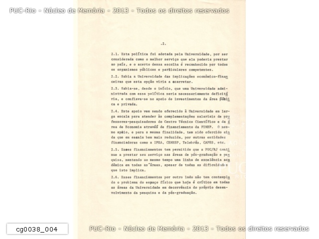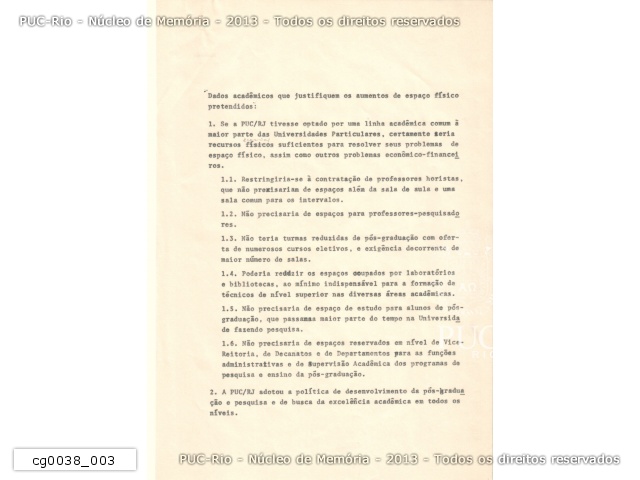 Relatório do V. R. Acadêmico ao Assessor de Desenvolvimento, prof. Paulo Novaes, sobre expansão do espaço físico para a pós - cg0038_004 cg0038_004 1978 Relatório Espaço Físico na PUC/RJ - p.2
