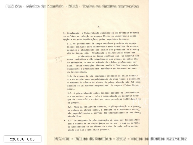 Relatório do V. R. Acadêmico ao Assessor de Desenvolvimento, prof. Paulo Novaes, sobre expansão do espaço físico para a pós - cg0038_005 cg0038_005 1978 Relatório Espaço Físico na PUC/RJ - p.3