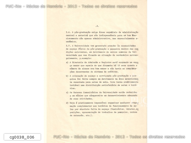 Relatório do V. R. Acadêmico ao Assessor de Desenvolvimento, prof. Paulo Novaes, sobre expansão do espaço físico para a pós - cg0038_006 cg0038_006 1978 Relatório Espaço Físico na PUC/RJ - p.4