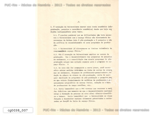 Relatório do V. R. Acadêmico ao Assessor de Desenvolvimento, prof. Paulo Novaes, sobre expansão do espaço físico para a pós - cg0038_007 cg0038_007 1978 Relatório Espaço Físico na PUC/RJ - p.5