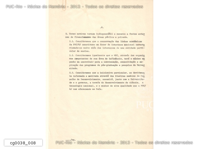 Relatório do V. R. Acadêmico ao Assessor de Desenvolvimento, prof. Paulo Novaes, sobre expansão do espaço físico para a pós - cg0038_008 cg0038_008 1978 Relatório Espaço Físico na PUC/RJ - p.6