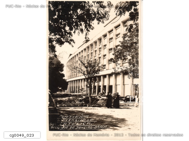 cg0049_057 | 17/7/1955 | Inauguração da nova sede da PUC-Rio na Gávea durante o 36º Congresso Eucarístico Internacional. O cardeal dom Jaime de Barros Câmara celebrou a missa e o legado papal, cardeal dom Bento Aloísio Masella, concedeu a benção ao novo edifício. |