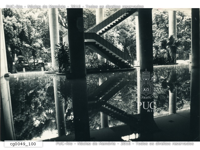 cg0049_100 | 1980 | Pilotis do Edifício Cardeal Leme inundado após chuvas. Reflexo das escadas. |