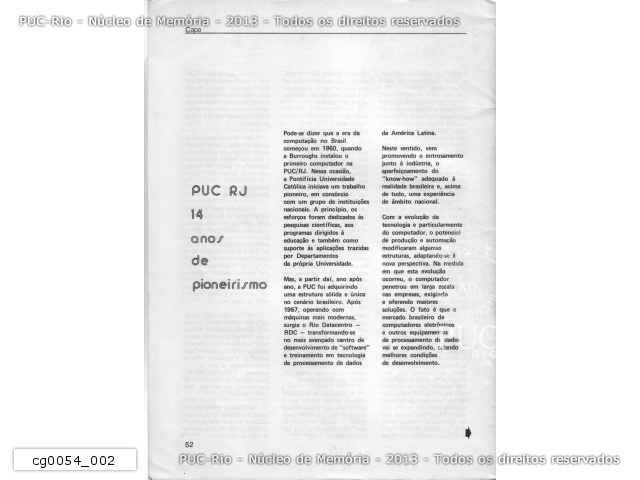Revista Brasileira de Processamento de Dados - SUCESU, Ano III, no.29, Agosto 74 - cg0054_002 cg0054_002 8/1974 Início da matéria - 14 anos de pioneirismo