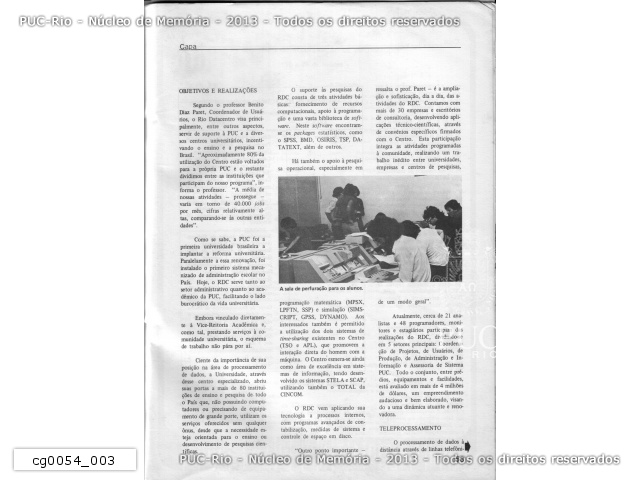 Revista Brasileira de Processamento de Dados - SUCESU, Ano III, no.29, Agosto 74 - cg0054_003 cg0054_003 8/1974 Cont.matéria - 14 anos de pioneirismo - foto da sala de perfuração de cartões