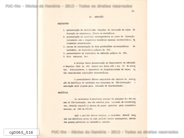 cg0065_016 | 1968 | p.13 - Requisitos de Admissão |