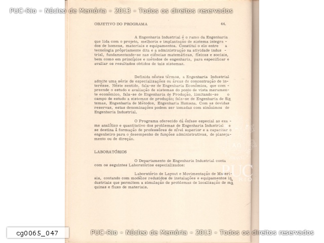 cg0065_047 | 1968 | p.44 - Engenharia Industrial - Objetivo do Programa |