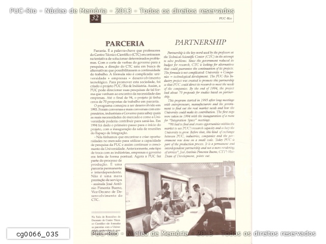 cg0066_034 | 1995 | p.32 - Parceria - Na Sala de Reuniões do Decanato do Centro Técnico Científico são formadas as parcerias com a Universidade, em benefício do aperfeiçoamento profissional |