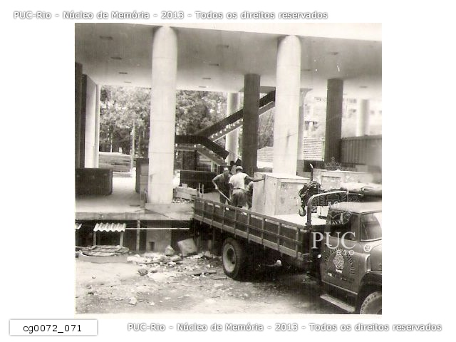 cg0072_071 | 10/1968 | Chegada de peças em caixotes para o acelerador de partículas Van de Graaff. |