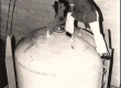 cg0072_003 | 1950 | Pe. Roser no campo de football da Universidade de Chicago, utilizando balões atmosféricos para testes de raios cósmicos. |