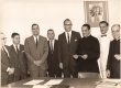 cg0072_085 | 1959 | Pe. Laércio Dias de Moura S.J. e Pe. Roser S.J. recebem doação (cheque) da empresa Gillete para a construção do prédio da Física. |