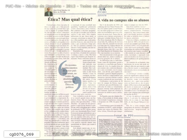 cg0076_069 | 17/7/2005 | Jornal da PUC - 50 anos campus Gávea - p.2 - Artigo da Associação de Antigos Alunos: "A vida no campus são os alunos". |