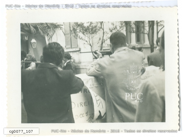 cg0077_089 | 1964 | Missa nos pilotis do Edifício Cardeal Leme, na altura do bloco C. Há a indicação que seria uma missa de formatura, mas os formandos não estão identificáveis na foto. |