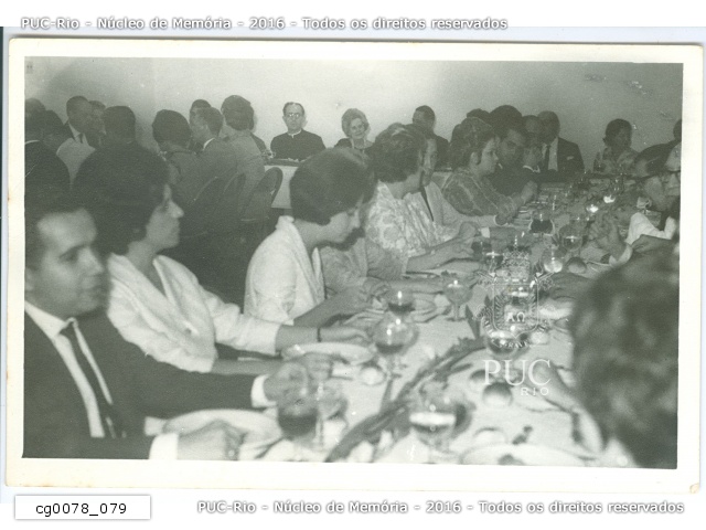 cg0078_032 | 1962 | O Reitor Pe. Laércio S.J. em evento social, possivelmente na sede do Lions Club do Rio de Janeiro, no centro da cidade. |