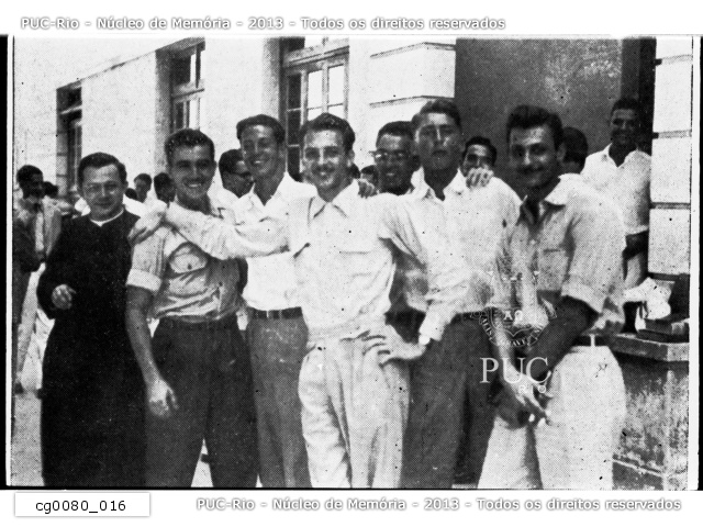 cg0080_017 | 1950 | Grupo de alunos posa para foto, no Colégio Santo Inácio. |
