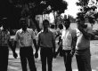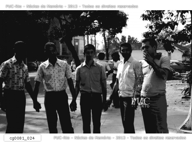 cg0081_032 | 7/1973 | Funcionários no campus após missa de Páscoa celebrada pelo pe. Pedro Belisário Velloso Rebello, S.J. na Capela da PUC no pilotis Ed.Cardeal Leme especialmente dedicada aos funcionários da Divisão de Manutenção Técnica. |