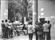 cg0081_031 | 7/1973 | Funcionários no campus após missa de Páscoa celebrada pelo pe. Pedro Belisário Velloso Rebello, S.J. na Capela da PUC no pilotis Ed.Cardeal Leme especialmente dedicada aos funcionários da Divisão de Manutenção Técnica. |