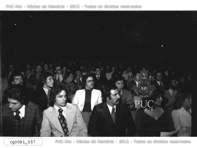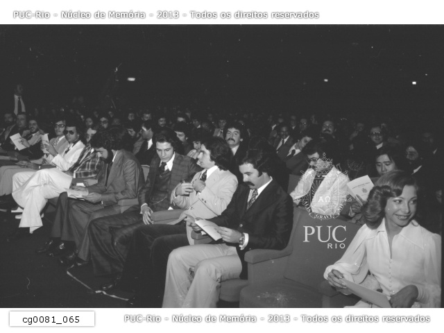 cg0081_093 | 1972 | Formandos e familiares presentes na cerimônia de colação de grau dos cursos do Centro Técnico Científico da PUC-Rio. |
