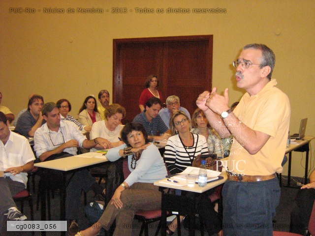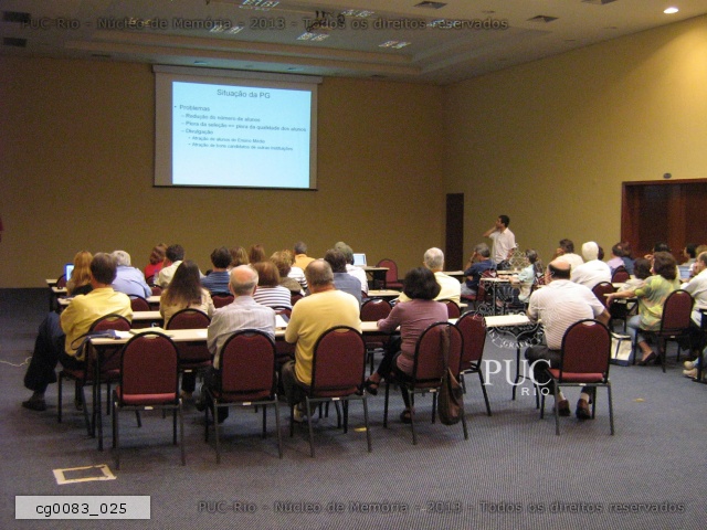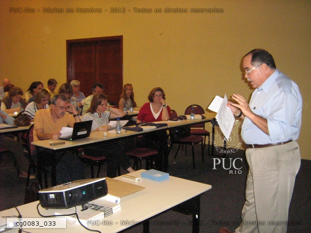 Fotografias do Seminário de Preparação do Plano de Desenvolvimento Institucional (PDI) da PUC-Rio 2008 - 2012 que reuniu professores, coordenadores, decanos e vice-reitores em Itaipava no Rio de Janeiro. Ao final do primeiro dia do seminário, a profa. Margarida de Souza Neves, Coordenadora Acadêmica do Núcleo de Memória da PUC-Rio, fez uma apresentação sobre o trabalho do Núcleo