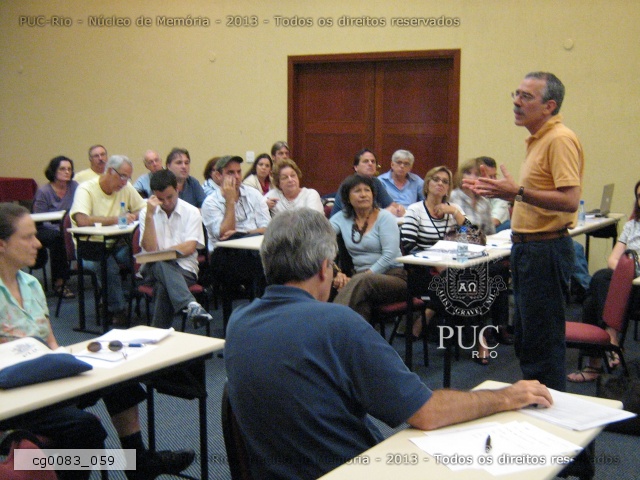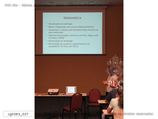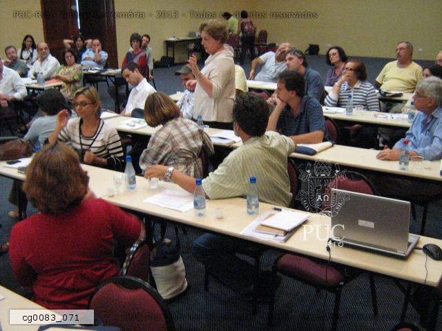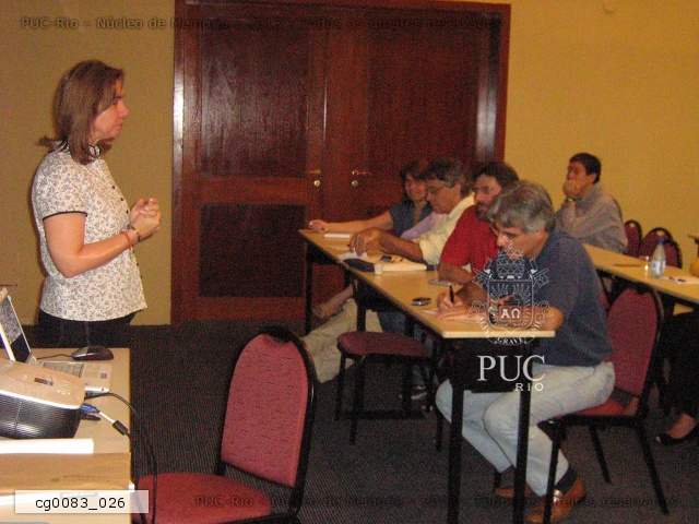 Fotografias do Seminário de Preparação do Plano de Desenvolvimento Institucional (PDI) da PUC-Rio 2008 - 2012 que reuniu professores, coordenadores, decanos e vice-reitores em Itaipava no Rio de Janeiro. Ao final do primeiro dia do seminário, a profa. Margarida de Souza Neves, Coordenadora Acadêmica do Núcleo de Memória da PUC-Rio, fez uma apresentação sobre o trabalho do Núcleo