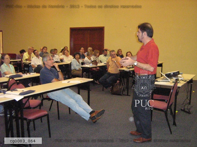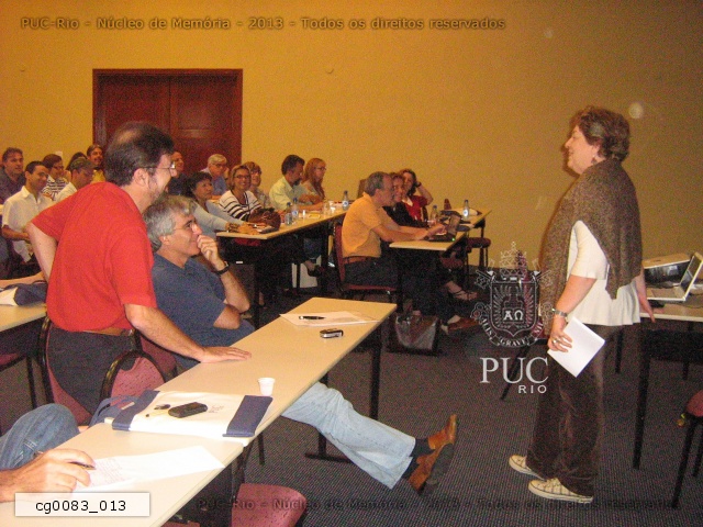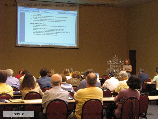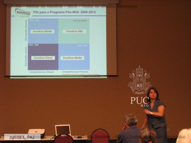 Fotografias do Seminário de Preparação do Plano de Desenvolvimento Institucional (PDI) da PUC-Rio 2008 - 2012 que reuniu professores, coordenadores, decanos e vice-reitores em Itaipava no Rio de Janeiro. Ao final do primeiro dia do seminário, a profa. Margarida de Souza Neves, Coordenadora Acadêmica do Núcleo de Memória da PUC-Rio, fez uma apresentação sobre o trabalho do Núcleo